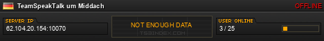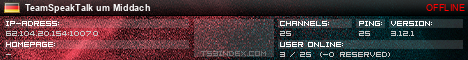 TS3index.com stellt Ihnen eine große Auswahl von verschiedenen Serverbannern bereit. Der Serverbanner zeigt den Status des TeamSpeak 3 Servers als Grafik im PNG-Format an. Kopieren Sie den Code in Ihre Website, Forum oder Blog.