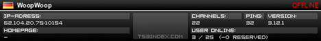 TS3index.com stellt Ihnen eine große Auswahl von verschiedenen Serverbannern bereit. Der Serverbanner zeigt den Status des TeamSpeak 3 Servers als Grafik im PNG-Format an. Kopieren Sie den Code in Ihre Website, Forum oder Blog.