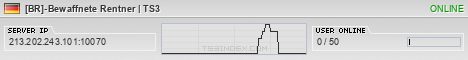TS3index.com stellt Ihnen eine große Auswahl von verschiedenen Serverbannern bereit. Der Serverbanner zeigt den Status des TeamSpeak 3 Servers als Grafik im PNG-Format an. Kopieren Sie den Code in Ihre Website, Forum oder Blog.