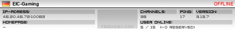 TS3index.com stellt Ihnen eine große Auswahl von verschiedenen Serverbannern bereit. Der Serverbanner zeigt den Status des TeamSpeak 3 Servers als Grafik im PNG-Format an. Kopieren Sie den Code in Ihre Website, Forum oder Blog.