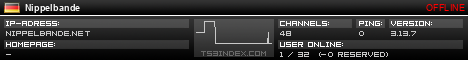 TS3index.com stellt Ihnen eine große Auswahl von verschiedenen Serverbannern bereit. Der Serverbanner zeigt den Status des TeamSpeak 3 Servers als Grafik im PNG-Format an. Kopieren Sie den Code in Ihre Website, Forum oder Blog.