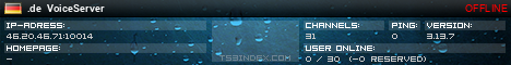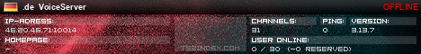 TS3index.com stellt Ihnen eine große Auswahl von verschiedenen Serverbannern bereit. Der Serverbanner zeigt den Status des TeamSpeak 3 Servers als Grafik im PNG-Format an. Kopieren Sie den Code in Ihre Website, Forum oder Blog.