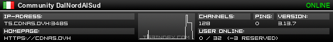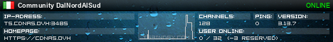TS3index.com stellt Ihnen eine große Auswahl von verschiedenen Serverbannern bereit. Der Serverbanner zeigt den Status des TeamSpeak 3 Servers als Grafik im PNG-Format an. Kopieren Sie den Code in Ihre Website, Forum oder Blog.
