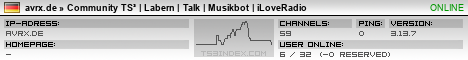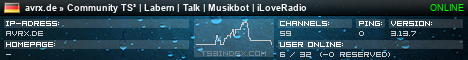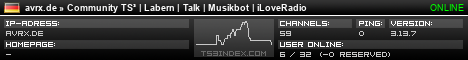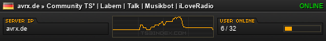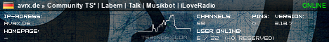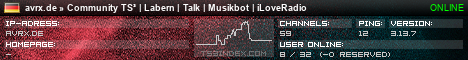 TS3index.com stellt Ihnen eine große Auswahl von verschiedenen Serverbannern bereit. Der Serverbanner zeigt den Status des TeamSpeak 3 Servers als Grafik im PNG-Format an. Kopieren Sie den Code in Ihre Website, Forum oder Blog.