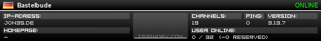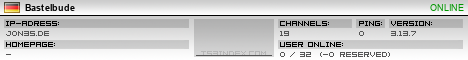 TS3index.com stellt Ihnen eine große Auswahl von verschiedenen Serverbannern bereit. Der Serverbanner zeigt den Status des TeamSpeak 3 Servers als Grafik im PNG-Format an. Kopieren Sie den Code in Ihre Website, Forum oder Blog.