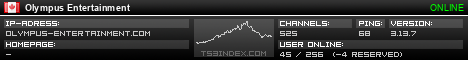 TS3index.com stellt Ihnen eine große Auswahl von verschiedenen Serverbannern bereit. Der Serverbanner zeigt den Status des TeamSpeak 3 Servers als Grafik im PNG-Format an. Kopieren Sie den Code in Ihre Website, Forum oder Blog.