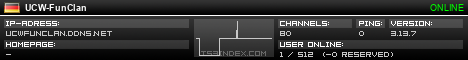 TS3index.com stellt Ihnen eine große Auswahl von verschiedenen Serverbannern bereit. Der Serverbanner zeigt den Status des TeamSpeak 3 Servers als Grafik im PNG-Format an. Kopieren Sie den Code in Ihre Website, Forum oder Blog.