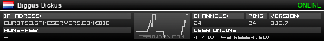 TS3index.com stellt Ihnen eine große Auswahl von verschiedenen Serverbannern bereit. Der Serverbanner zeigt den Status des TeamSpeak 3 Servers als Grafik im PNG-Format an. Kopieren Sie den Code in Ihre Website, Forum oder Blog.
