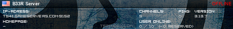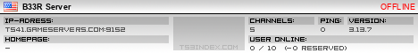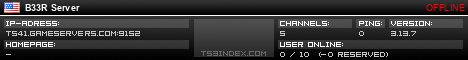 TS3index.com stellt Ihnen eine große Auswahl von verschiedenen Serverbannern bereit. Der Serverbanner zeigt den Status des TeamSpeak 3 Servers als Grafik im PNG-Format an. Kopieren Sie den Code in Ihre Website, Forum oder Blog.