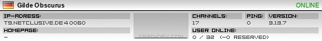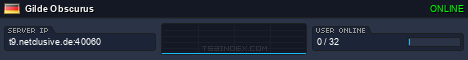 TS3index.com stellt Ihnen eine große Auswahl von verschiedenen Serverbannern bereit. Der Serverbanner zeigt den Status des TeamSpeak 3 Servers als Grafik im PNG-Format an. Kopieren Sie den Code in Ihre Website, Forum oder Blog.