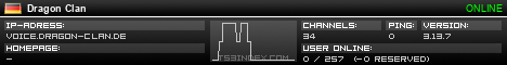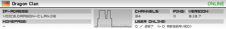 TS3index.com stellt Ihnen eine große Auswahl von verschiedenen Serverbannern bereit. Der Serverbanner zeigt den Status des TeamSpeak 3 Servers als Grafik im PNG-Format an. Kopieren Sie den Code in Ihre Website, Forum oder Blog.