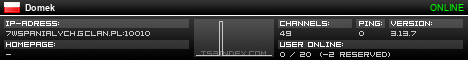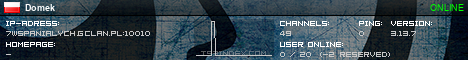 TS3index.com stellt Ihnen eine große Auswahl von verschiedenen Serverbannern bereit. Der Serverbanner zeigt den Status des TeamSpeak 3 Servers als Grafik im PNG-Format an. Kopieren Sie den Code in Ihre Website, Forum oder Blog.