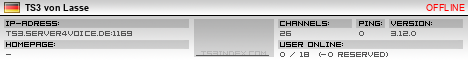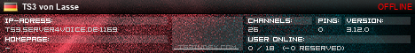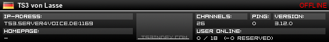 TS3index.com stellt Ihnen eine große Auswahl von verschiedenen Serverbannern bereit. Der Serverbanner zeigt den Status des TeamSpeak 3 Servers als Grafik im PNG-Format an. Kopieren Sie den Code in Ihre Website, Forum oder Blog.