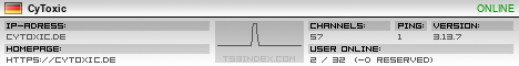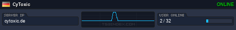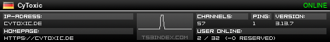 TS3index.com stellt Ihnen eine große Auswahl von verschiedenen Serverbannern bereit. Der Serverbanner zeigt den Status des TeamSpeak 3 Servers als Grafik im PNG-Format an. Kopieren Sie den Code in Ihre Website, Forum oder Blog.