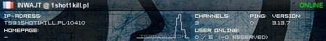 TS3index.com stellt Ihnen eine große Auswahl von verschiedenen Serverbannern bereit. Der Serverbanner zeigt den Status des TeamSpeak 3 Servers als Grafik im PNG-Format an. Kopieren Sie den Code in Ihre Website, Forum oder Blog.