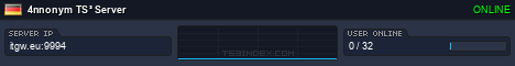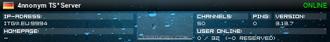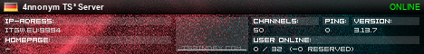 TS3index.com stellt Ihnen eine große Auswahl von verschiedenen Serverbannern bereit. Der Serverbanner zeigt den Status des TeamSpeak 3 Servers als Grafik im PNG-Format an. Kopieren Sie den Code in Ihre Website, Forum oder Blog.