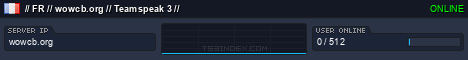 TS3index.com stellt Ihnen eine große Auswahl von verschiedenen Serverbannern bereit. Der Serverbanner zeigt den Status des TeamSpeak 3 Servers als Grafik im PNG-Format an. Kopieren Sie den Code in Ihre Website, Forum oder Blog.