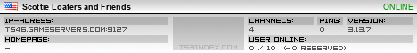 TS3index.com stellt Ihnen eine große Auswahl von verschiedenen Serverbannern bereit. Der Serverbanner zeigt den Status des TeamSpeak 3 Servers als Grafik im PNG-Format an. Kopieren Sie den Code in Ihre Website, Forum oder Blog.