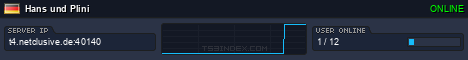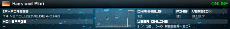 TS3index.com stellt Ihnen eine große Auswahl von verschiedenen Serverbannern bereit. Der Serverbanner zeigt den Status des TeamSpeak 3 Servers als Grafik im PNG-Format an. Kopieren Sie den Code in Ihre Website, Forum oder Blog.