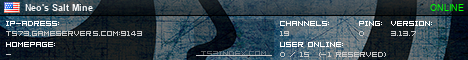 TS3index.com stellt Ihnen eine große Auswahl von verschiedenen Serverbannern bereit. Der Serverbanner zeigt den Status des TeamSpeak 3 Servers als Grafik im PNG-Format an. Kopieren Sie den Code in Ihre Website, Forum oder Blog.