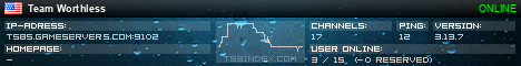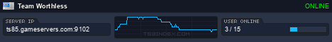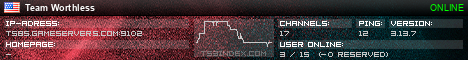TS3index.com stellt Ihnen eine große Auswahl von verschiedenen Serverbannern bereit. Der Serverbanner zeigt den Status des TeamSpeak 3 Servers als Grafik im PNG-Format an. Kopieren Sie den Code in Ihre Website, Forum oder Blog.