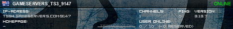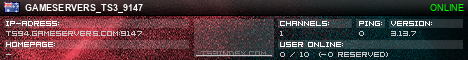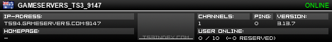 TS3index.com stellt Ihnen eine große Auswahl von verschiedenen Serverbannern bereit. Der Serverbanner zeigt den Status des TeamSpeak 3 Servers als Grafik im PNG-Format an. Kopieren Sie den Code in Ihre Website, Forum oder Blog.