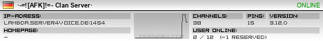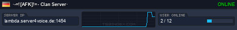 TS3index.com stellt Ihnen eine große Auswahl von verschiedenen Serverbannern bereit. Der Serverbanner zeigt den Status des TeamSpeak 3 Servers als Grafik im PNG-Format an. Kopieren Sie den Code in Ihre Website, Forum oder Blog.