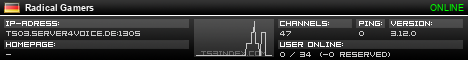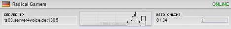 TS3index.com stellt Ihnen eine große Auswahl von verschiedenen Serverbannern bereit. Der Serverbanner zeigt den Status des TeamSpeak 3 Servers als Grafik im PNG-Format an. Kopieren Sie den Code in Ihre Website, Forum oder Blog.