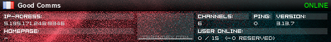 TS3index.com stellt Ihnen eine große Auswahl von verschiedenen Serverbannern bereit. Der Serverbanner zeigt den Status des TeamSpeak 3 Servers als Grafik im PNG-Format an. Kopieren Sie den Code in Ihre Website, Forum oder Blog.
