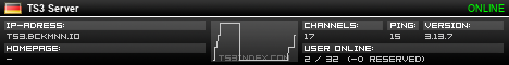 TS3index.com stellt Ihnen eine große Auswahl von verschiedenen Serverbannern bereit. Der Serverbanner zeigt den Status des TeamSpeak 3 Servers als Grafik im PNG-Format an. Kopieren Sie den Code in Ihre Website, Forum oder Blog.