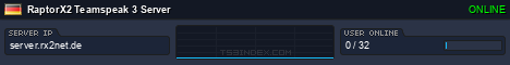 TS3index.com stellt Ihnen eine große Auswahl von verschiedenen Serverbannern bereit. Der Serverbanner zeigt den Status des TeamSpeak 3 Servers als Grafik im PNG-Format an. Kopieren Sie den Code in Ihre Website, Forum oder Blog.