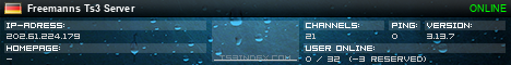 TS3index.com gives you access to a large amount of customizable server banner choices, from slim to skyscraper sizes. Copy and paste the code into your website, forum or blog.