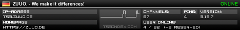 Neue Stimmungsbarometer verfügbar! - Ändere dein Stimmungs-Icon per Chatbefehl - Mehr unter: https://zuuo.de/teamspeak/commands/