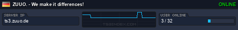 TS3index.com stellt Ihnen eine große Auswahl von verschiedenen Serverbannern bereit. Der Serverbanner zeigt den Status des TeamSpeak 3 Servers als Grafik im PNG-Format an. Kopieren Sie den Code in Ihre Website, Forum oder Blog.