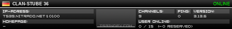 TS3index.com stellt Ihnen eine große Auswahl von verschiedenen Serverbannern bereit. Der Serverbanner zeigt den Status des TeamSpeak 3 Servers als Grafik im PNG-Format an. Kopieren Sie den Code in Ihre Website, Forum oder Blog.