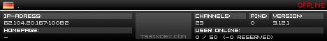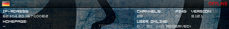 TS3index.com stellt Ihnen eine große Auswahl von verschiedenen Serverbannern bereit. Der Serverbanner zeigt den Status des TeamSpeak 3 Servers als Grafik im PNG-Format an. Kopieren Sie den Code in Ihre Website, Forum oder Blog.