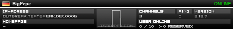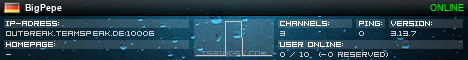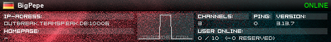 TS3index.com stellt Ihnen eine große Auswahl von verschiedenen Serverbannern bereit. Der Serverbanner zeigt den Status des TeamSpeak 3 Servers als Grafik im PNG-Format an. Kopieren Sie den Code in Ihre Website, Forum oder Blog.
