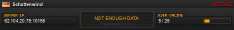 TS3index.com stellt Ihnen eine große Auswahl von verschiedenen Serverbannern bereit. Der Serverbanner zeigt den Status des TeamSpeak 3 Servers als Grafik im PNG-Format an. Kopieren Sie den Code in Ihre Website, Forum oder Blog.