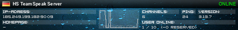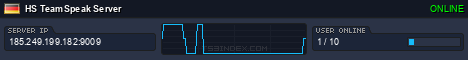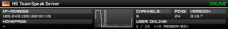 TS3index.com stellt Ihnen eine große Auswahl von verschiedenen Serverbannern bereit. Der Serverbanner zeigt den Status des TeamSpeak 3 Servers als Grafik im PNG-Format an. Kopieren Sie den Code in Ihre Website, Forum oder Blog.