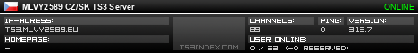 Vítej na TS3 serveru MLVY2589, přečti si pravidla :)