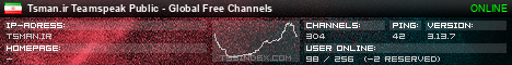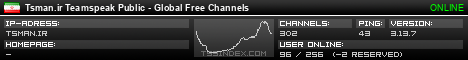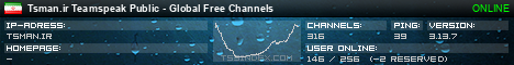 Welcome to the Public TeamSpeak server (Tsman.ir) We hope you enjoy your time with us.