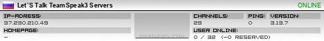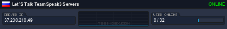 TS3index.com stellt Ihnen eine große Auswahl von verschiedenen Serverbannern bereit. Der Serverbanner zeigt den Status des TeamSpeak 3 Servers als Grafik im PNG-Format an. Kopieren Sie den Code in Ihre Website, Forum oder Blog.