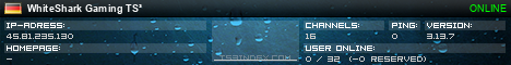 TS3index.com stellt Ihnen eine große Auswahl von verschiedenen Serverbannern bereit. Der Serverbanner zeigt den Status des TeamSpeak 3 Servers als Grafik im PNG-Format an. Kopieren Sie den Code in Ihre Website, Forum oder Blog.