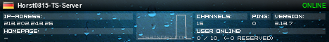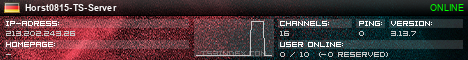 TS3index.com stellt Ihnen eine große Auswahl von verschiedenen Serverbannern bereit. Der Serverbanner zeigt den Status des TeamSpeak 3 Servers als Grafik im PNG-Format an. Kopieren Sie den Code in Ihre Website, Forum oder Blog.