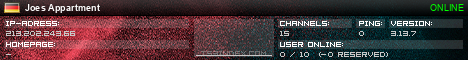 TS3index.com stellt Ihnen eine große Auswahl von verschiedenen Serverbannern bereit. Der Serverbanner zeigt den Status des TeamSpeak 3 Servers als Grafik im PNG-Format an. Kopieren Sie den Code in Ihre Website, Forum oder Blog.