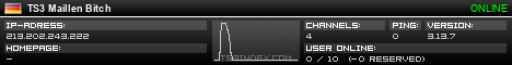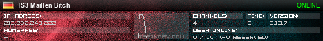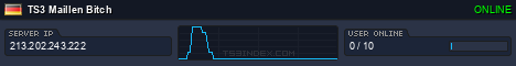 TS3index.com stellt Ihnen eine große Auswahl von verschiedenen Serverbannern bereit. Der Serverbanner zeigt den Status des TeamSpeak 3 Servers als Grafik im PNG-Format an. Kopieren Sie den Code in Ihre Website, Forum oder Blog.