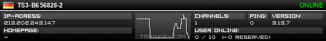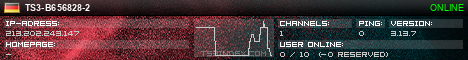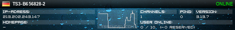 TS3index.com stellt Ihnen eine große Auswahl von verschiedenen Serverbannern bereit. Der Serverbanner zeigt den Status des TeamSpeak 3 Servers als Grafik im PNG-Format an. Kopieren Sie den Code in Ihre Website, Forum oder Blog.