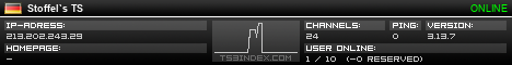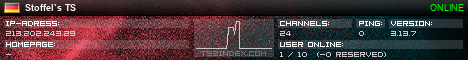 TS3index.com stellt Ihnen eine große Auswahl von verschiedenen Serverbannern bereit. Der Serverbanner zeigt den Status des TeamSpeak 3 Servers als Grafik im PNG-Format an. Kopieren Sie den Code in Ihre Website, Forum oder Blog.