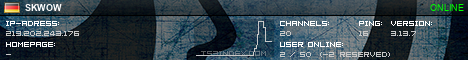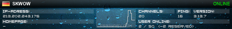 TS3index.com stellt Ihnen eine große Auswahl von verschiedenen Serverbannern bereit. Der Serverbanner zeigt den Status des TeamSpeak 3 Servers als Grafik im PNG-Format an. Kopieren Sie den Code in Ihre Website, Forum oder Blog.