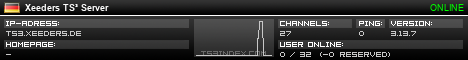 TS3index.com stellt Ihnen eine große Auswahl von verschiedenen Serverbannern bereit. Der Serverbanner zeigt den Status des TeamSpeak 3 Servers als Grafik im PNG-Format an. Kopieren Sie den Code in Ihre Website, Forum oder Blog.